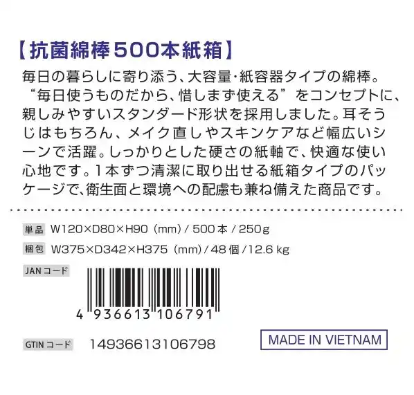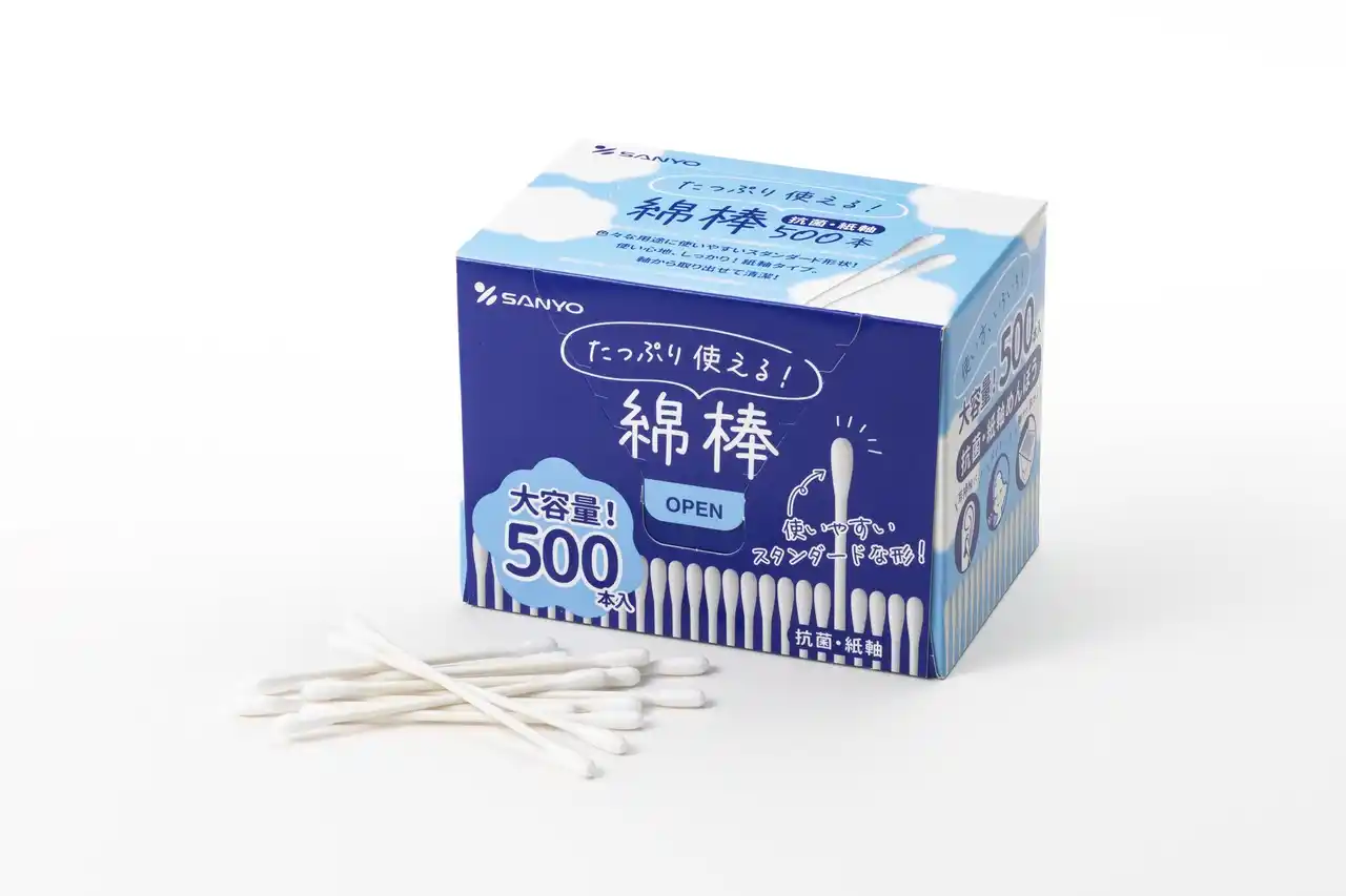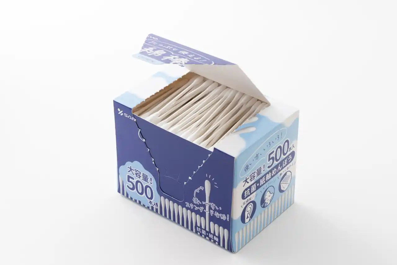 綿棒一筋59年、国内トップシェアを誇る株式会社山洋(本社:大阪府富田林市、代表取締役:日比 努)は、中東情勢の緊迫化に伴うナフサ不足、およびプラスチック原料の急激な価格高騰と供給制限を受け、主力である「プラスチック製丸筒容器」に代わる「紙容器」製品の強化に注力している。今年その第一弾として、人気の丸筒2個セット(400本)を上回る大容量を実現した「抗菌綿棒 500本紙箱」を2026年4月より発売いたします |