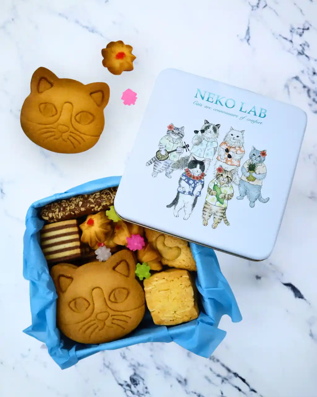 猫モチーフの焼き菓子と雑貨を展開する「NEKO LAB」は、“全国ねこ巡りの旅”の新作として、沖縄編 クッキー缶を発売いたしました。 |