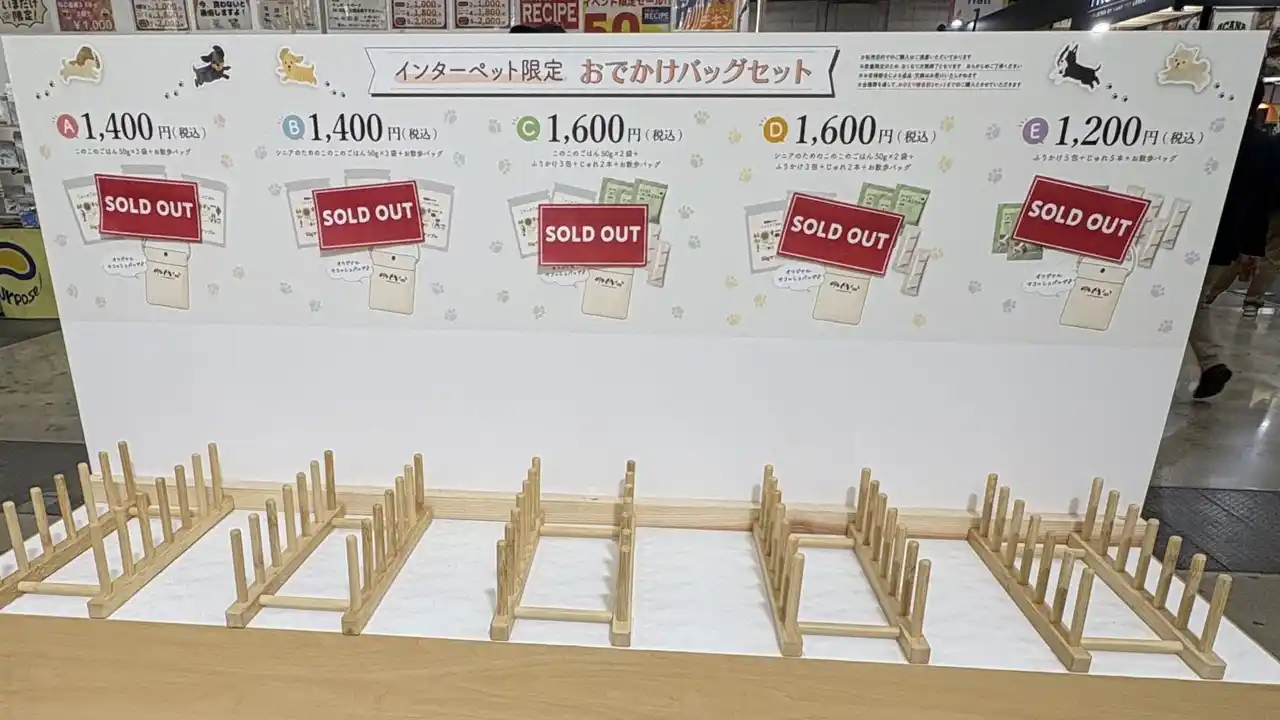 | 人気商品のサンプルとオリジナルデザインのサコッシュを組み合わせた「インターペット限定おでかけバッグセット」として販売し、多くのお客様にお立ち寄りいただき、会期中に完売となりました。 | ||||||||||
