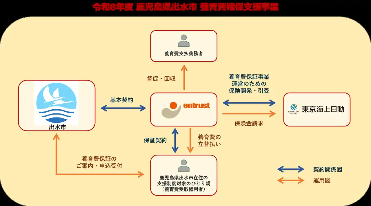 株式会社イントラスト(本社:東京都千代田区、代表取締役社長:桑原 豊、以下「イントラスト」)は、東京海上日動火災保険株式会社(本社:東京都千代田区、取締役社長:城田 宏明、以下「東京海上日動」)と開発を進めていた自治体向け養育費保証モデルについて、この度、鹿児島県出水市(市長:椎木 伸一、以下「出水市」)に採用され、2026年4月1日より運用を開始いたしました。鹿児島県内での導入は、同市が初となります。 |