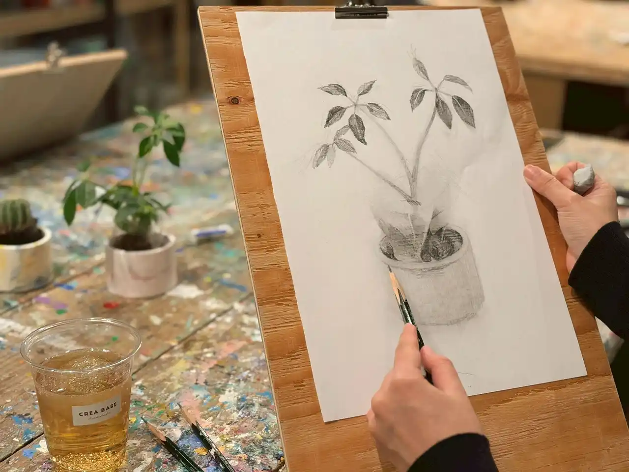 幅広いジャンル:デッサン、陶芸、風景画、アルコールインクフラワー等、その日の気分で自由に選択可能です。 |