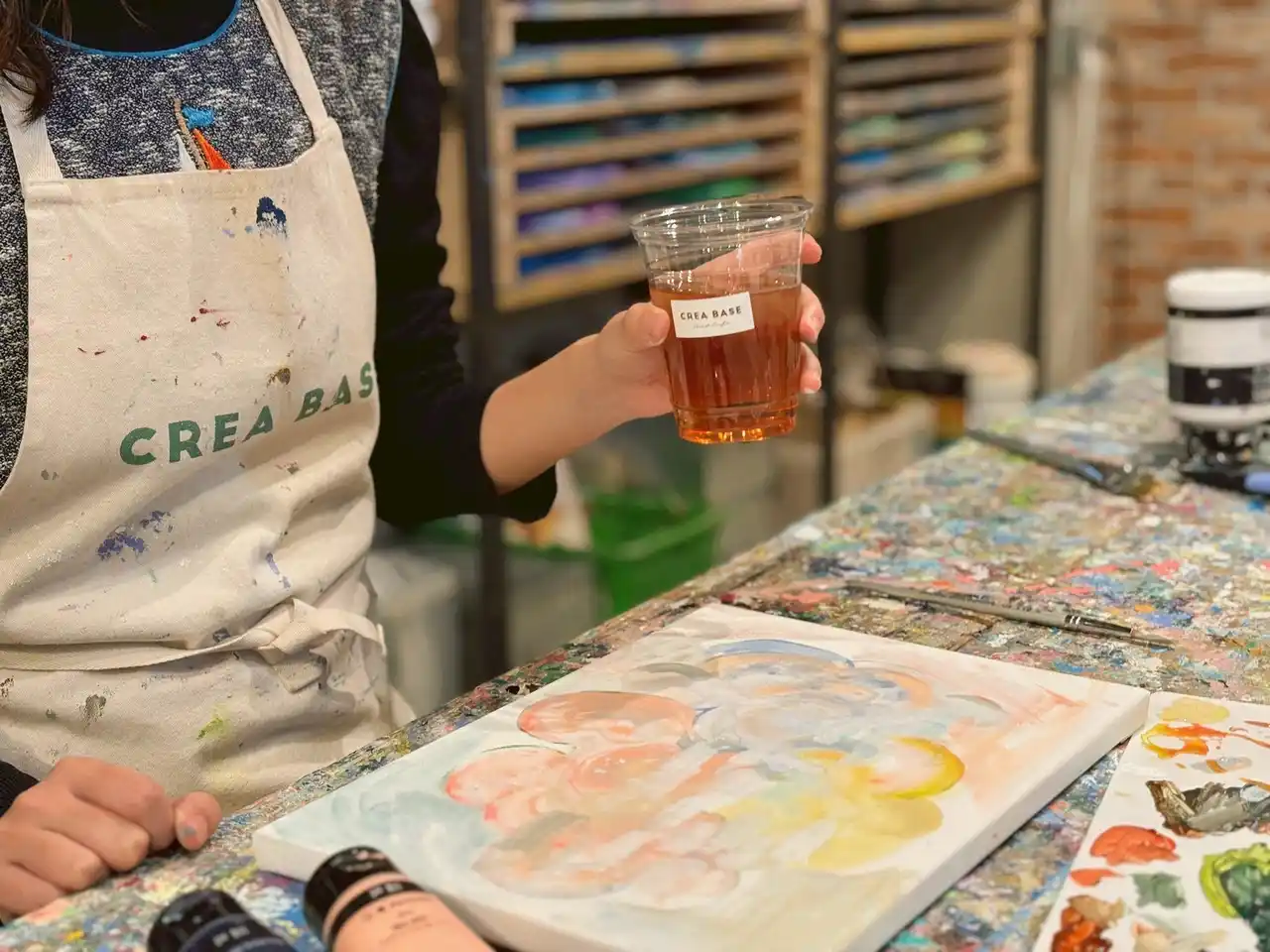 リラックスした創作時間:ドリンク飲み放題。お好きな飲み物を片手に過ごせます。 |