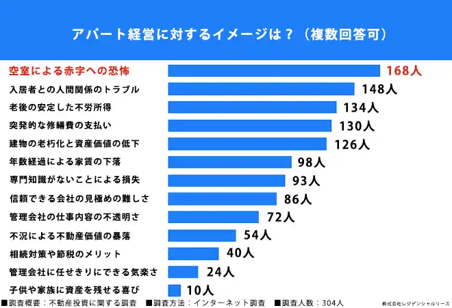 | アパート経営に対するイメージ「空室による赤字への恐怖」が最多回答 | ||||