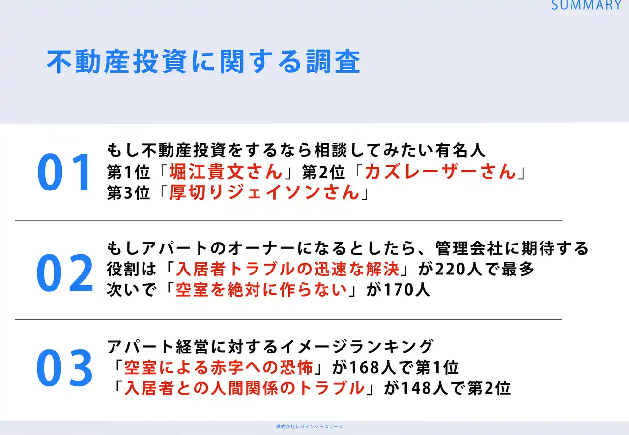 | ※アンケート結果を引用する場合は「引用:株式会社レジデンシャルリース」と記載し、該当ページのURLをリンクしてください。 | ||||