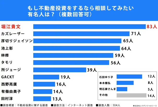 | もし不動産投資をするなら相談してみたい有名人、第1位は「堀江貴文さん」 | ||||
