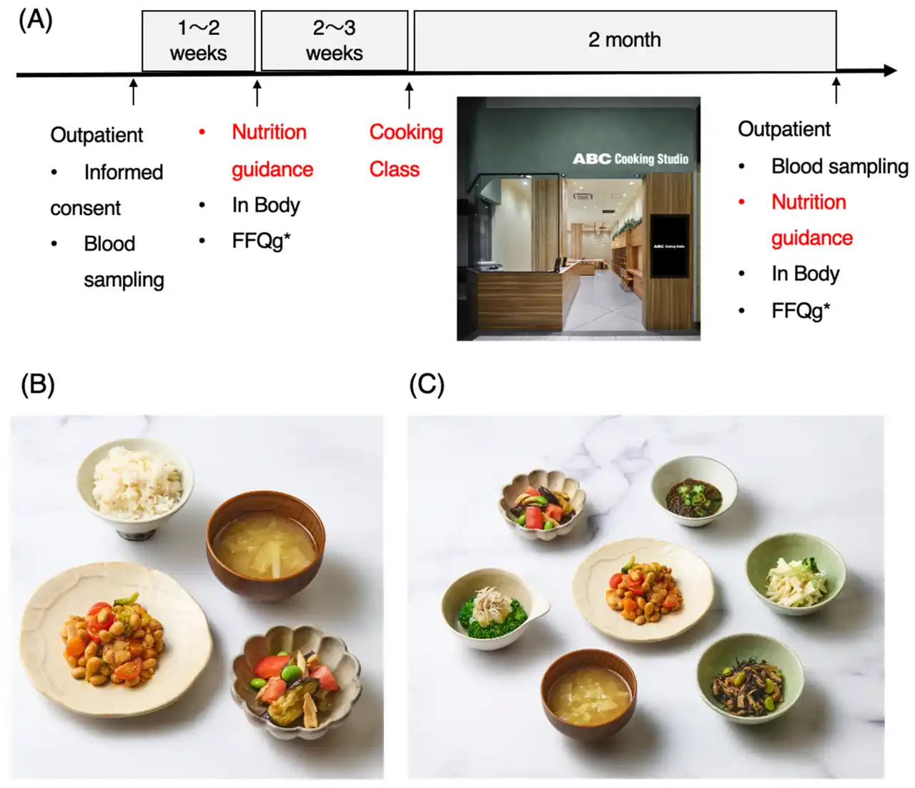 約2か月間の介入前後で、食事内容・血液データ・体組成の変化を評価しました。 |