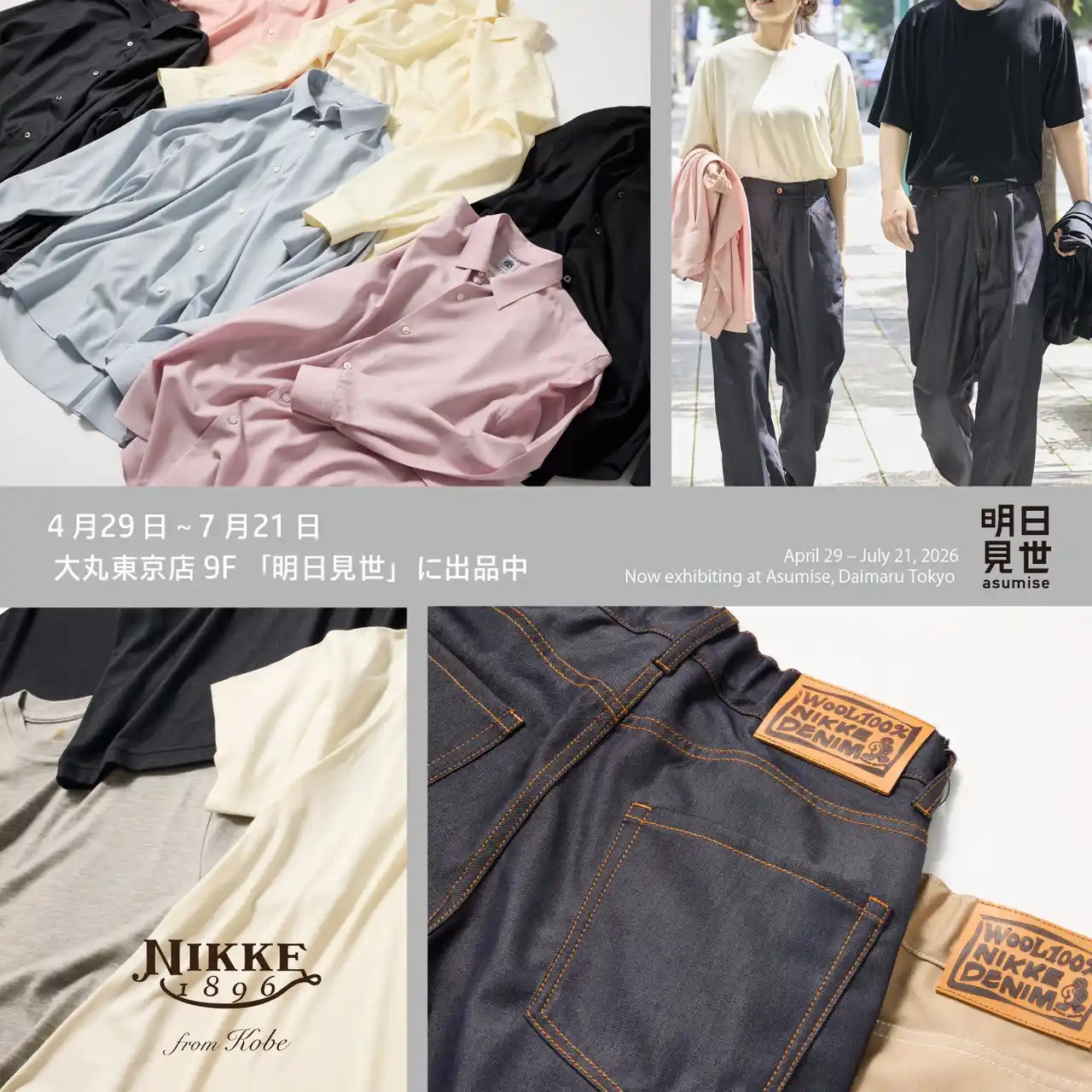 日本毛織株式会社(通称社名ニッケ 以下当社)は、心地よさにとことんこだわるメリノウール専門の衣服ブランド「NIKKE 1896」の一部定番商品を大丸東京店9F明日見世に出品します。商品を直接触って確かめる機会です。是非お気軽にご来店ください。 |