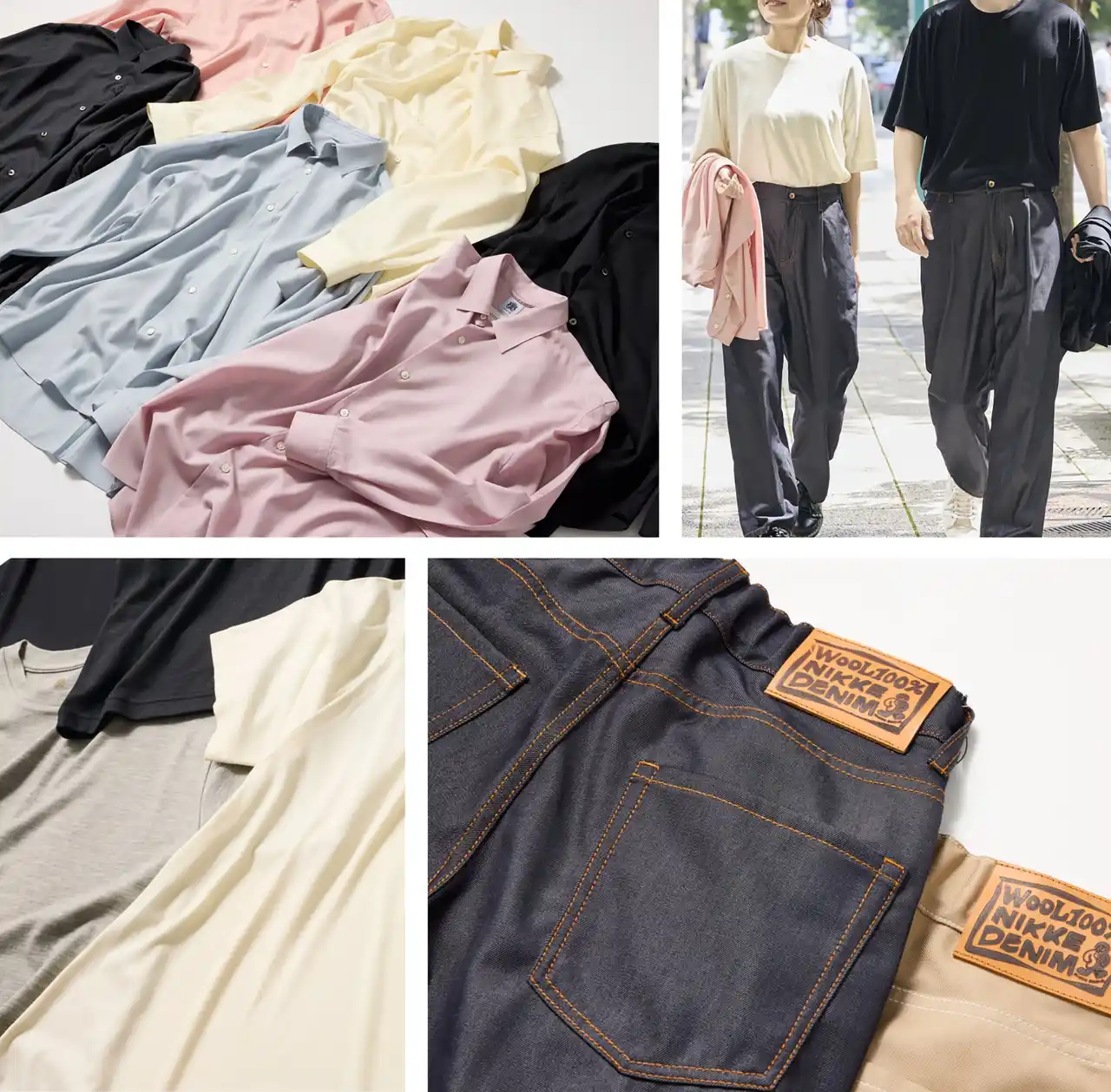 展示商品:水のようにしなやかなデニム / ウルトラファインメリノTシャツ(13.5μ・14.5μ・15.5μ) / ウルトラファインメリノTシャツ レディス / そよ風のようなウールシャツ / 薄手クルー丈ソックス / くるぶし丈ソックス |