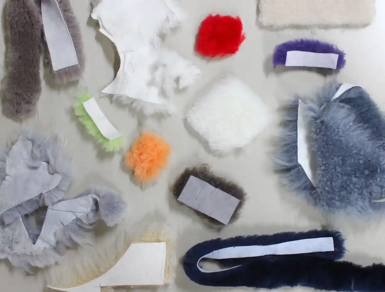 | 日本国内の皮革加工業では、製品の型取り・裁断工程で必ずといっていいほど端材が発生します。特に高品質な天然ムートン(羊の毛皮)は不規則な形状のため、その廃棄率は全体の約30~40%ともいわれています。 | |||