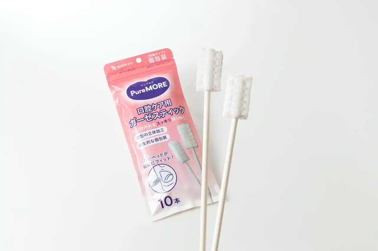私は90歳の親に口腔ケアをしています。歯ブラシでは歯を磨き、その他の口腔内をスポンジスワブを利用していますがもっとキレイにしてあげたいと、特に舌苔(舌の汚れ)が取れにくいのも何としてあげたく。綿棒メーカーで働いているので長い大きい綿棒を利用していたのですが、あるとき介護施設現場でベテランの介護師が指にガーゼを巻いて舌苔のケアをしており汚れが取れているのがハッキリ見えました。