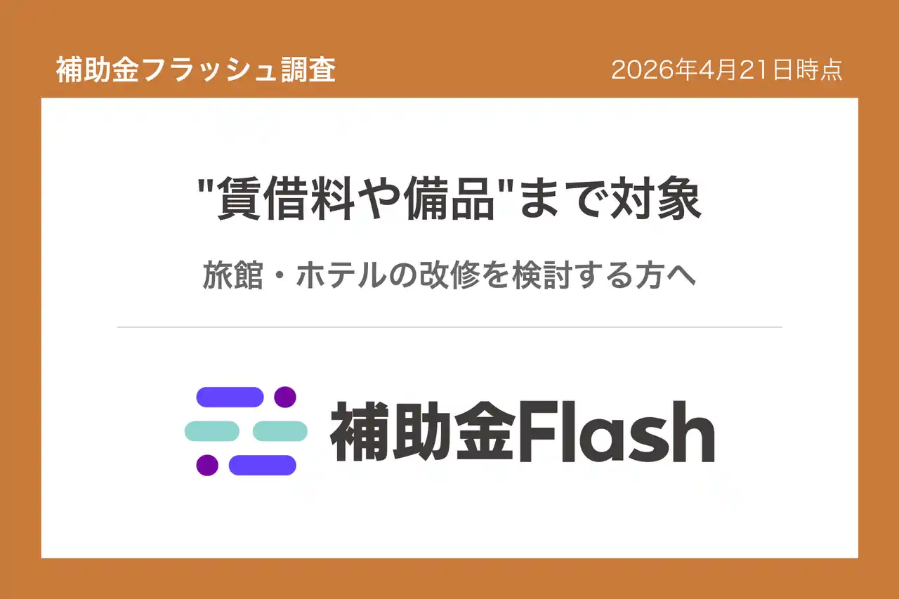 | 補助金フラッシュは、全国11万件以上の補助金・助成金を検索できるサービスです。キーワード・地域・補助金上限などの条件で絞り込み検索ができ、毎日最新情報に更新されます。 | ||||||||||||||