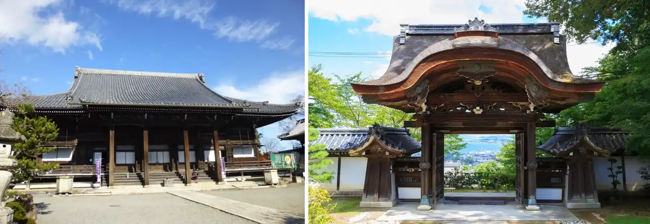 滋賀県大津市坂本に位置する天台真盛宗の総本山。聖徳太子創建の伝承を持ち、室町時代に明智光秀により復興された歴史ある古刹。総欅造りの本堂(重要文化財)、伏見桃山城を移築した客殿など見どころ多数。比叡山東麓に広がる境内からは琵琶湖を一望できる。 |