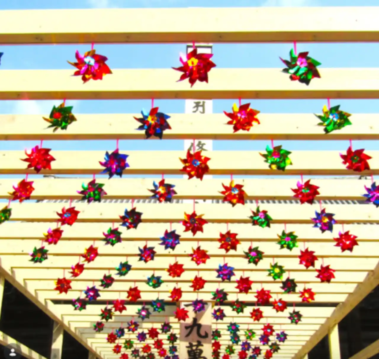 また、西教寺では例年この時期には境内でかざぐるまを飾るイベントを実施しており、色とりどりの風車が舞う明るく元気な雰囲気の境内の中で、精進こども食堂を開催します。 |