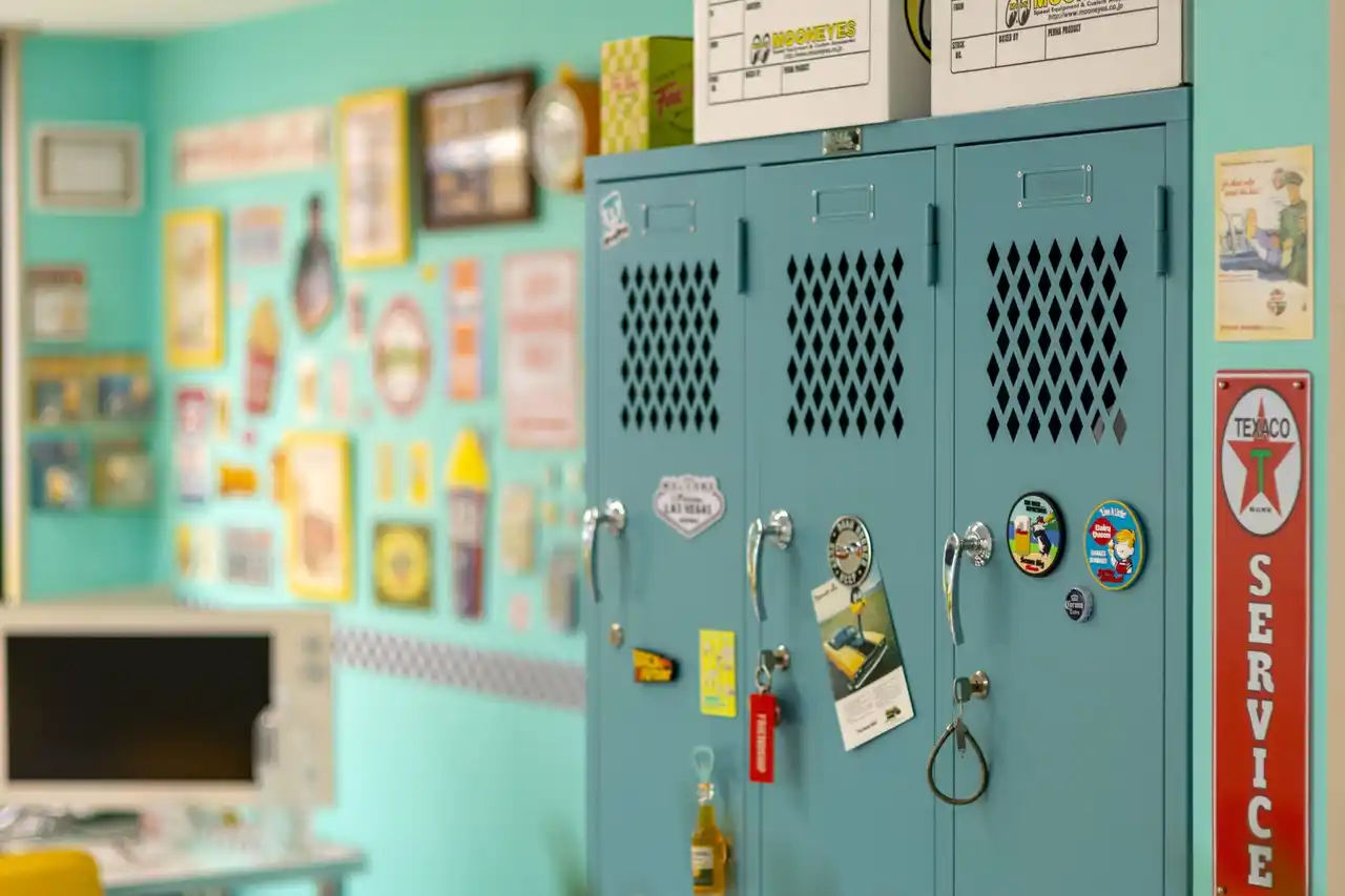 | 新オフィスは「アメリカンダイナー」をコンセプトに設計されており、白黒のチェッカーフロアやブリキ看板、ターコイズを基調とした配色など、従来のオフィスの枠にとらわれない空間となっています。 | |||||||||