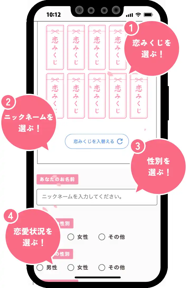 1.複数の恋みくじからひとつを選択。 |