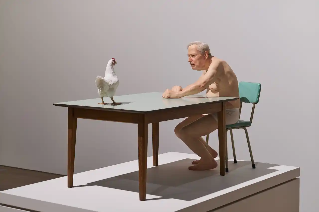 ロン・ミュエク《チキン/マン》2019年 | 所蔵:クライストチャーチ・アートギャラリー/テ・プナ・オ・ワイウェトゥ(ニュージーランド) | 展示風景:「ロン・ミュエク」森美術館(東京)2026年 | 撮影:吉村昌也 | 画像提供:カルティエ現代美術財団 |