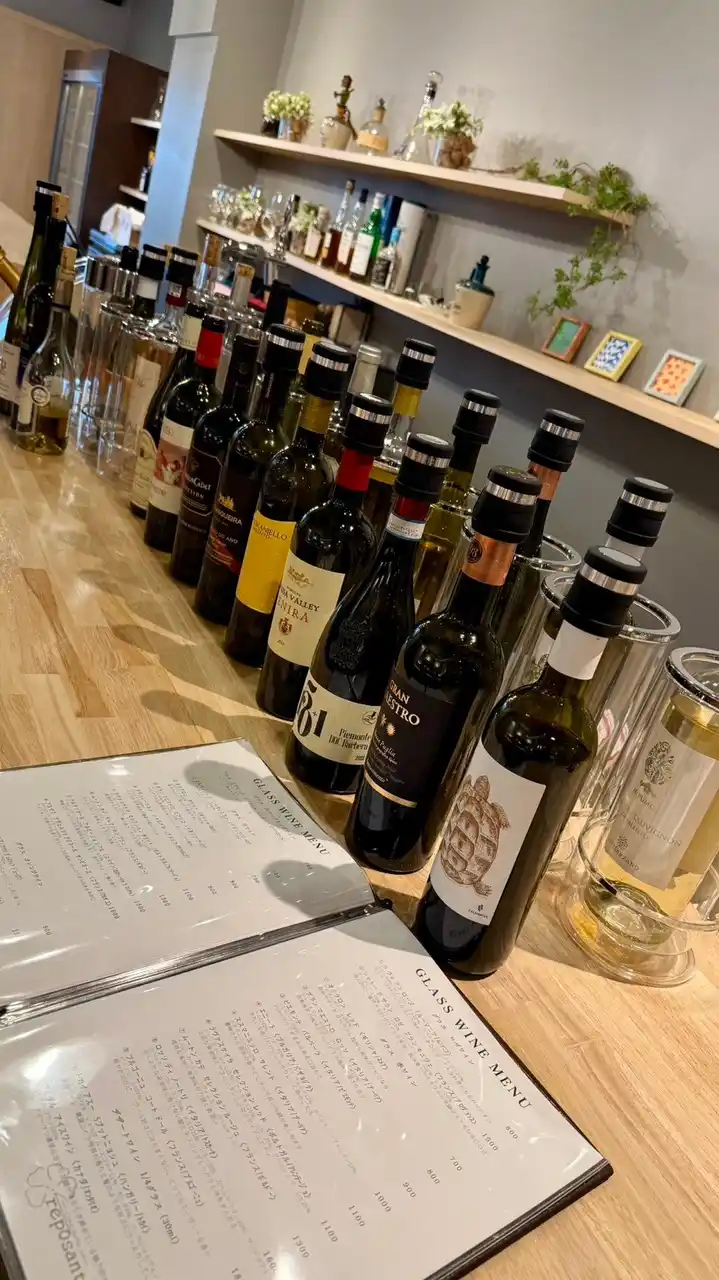 ワインは、インポーターとの直接取引や酒販店経由を含めて6社と取引し、現在はグラスワイン24種類、ボトルワイン49種類以上を展開しています。 |