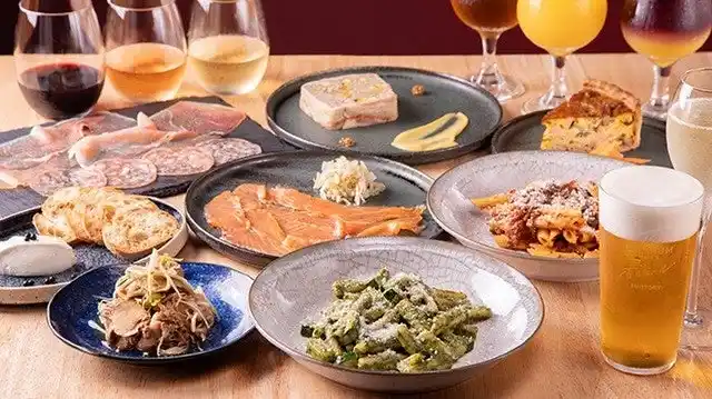 人気メニューは、「鶏ささみと長ネギのバルサミコマリネ」(680円)、「本日のキッシュ」(1,000円)、「パテ・ド・カンパーニュ」(1,200円)など。料理価格帯は680円~2,000円台で、ワインとともにゆっくり楽しめる構成です。 |