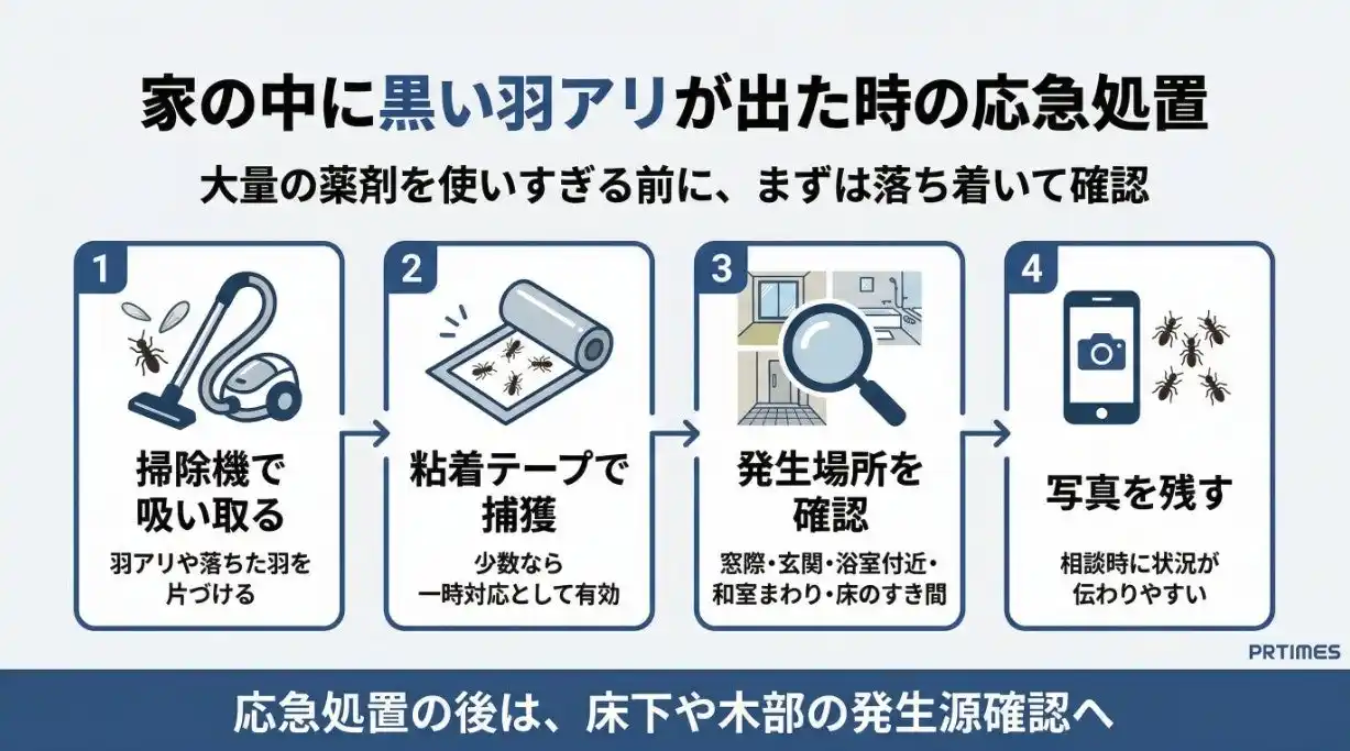 | 4~5月は黒い羽アリに注意。家の中で見つけた時の応急処置と床下無料点検の重要性を解説 |