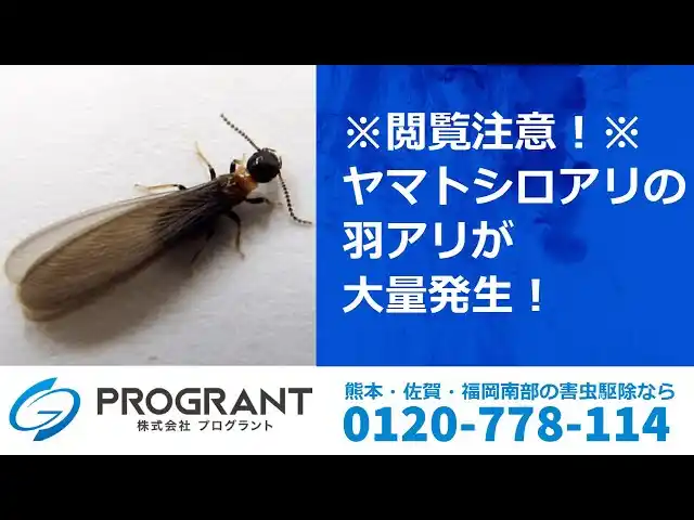 | 株式会社プログラント(本社:熊本県熊本市、代表取締役:藤井 靖光)は、ヤマトシロアリの羽アリが発生しやすい4月後半~5月のゴールデンウィーク時期に合わせ、福岡県・熊本県・佐賀県を対象に、家の中に黒い羽アリが出た際の応急処置、シロアリ対策、見分け方について注意喚起を行います。 | ||||||||
