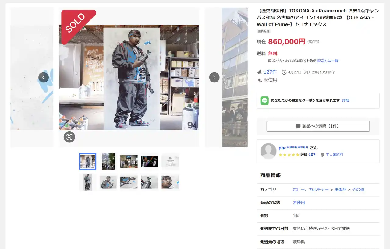 | その熱量と魂を、Roamcouch氏がキャンバスへと封じ込めた「世界で一枚」の特別な作品はヤフオクにて86万円にて落札された。 | |||