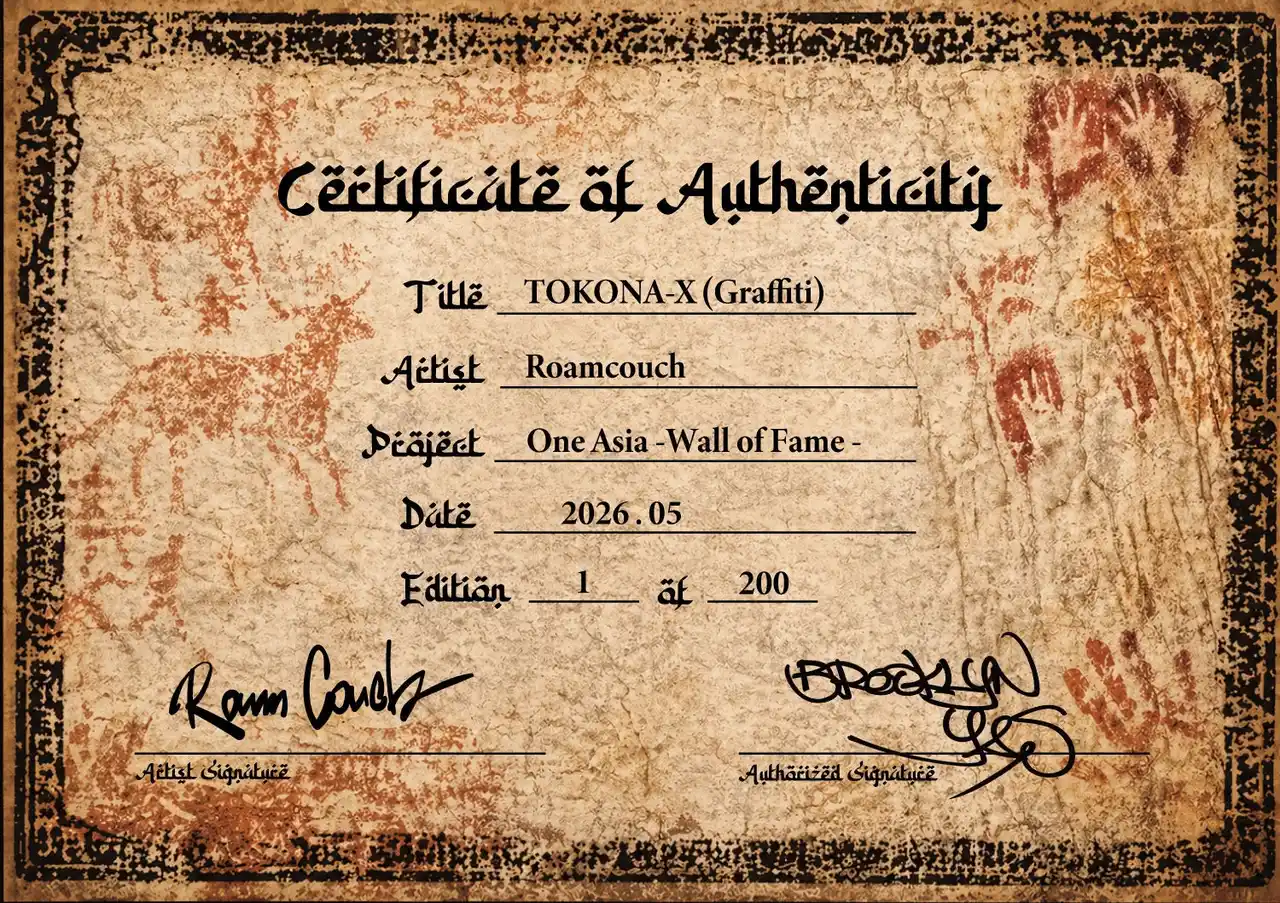 全作品にRoamcouch氏本人の直筆サインと真贋証明書(C.O.A)が付属し、美術品としての永続的な価値を保証。