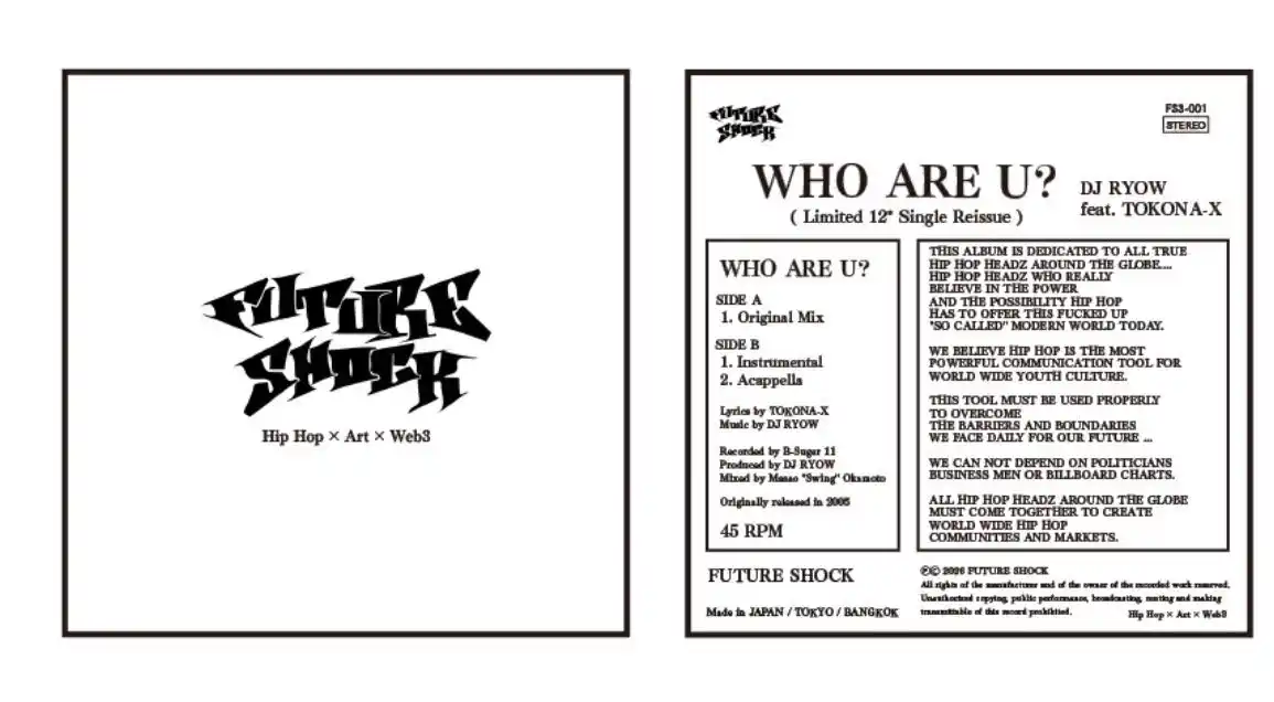 アナログ盤には、DJ RYOW feat. TOKONA-Xの名曲「WHO ARE U?」を収録。