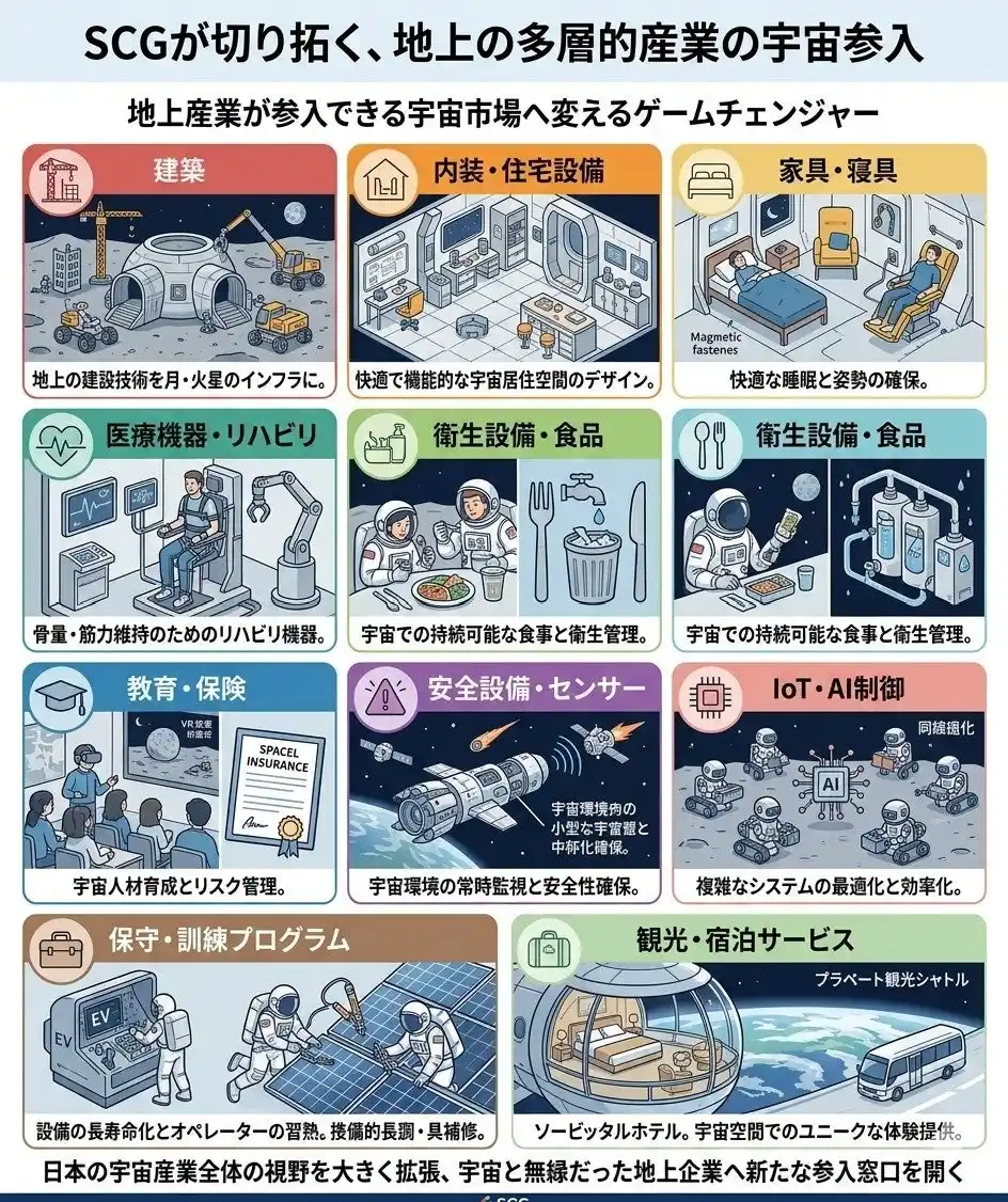 ステラクレードルグラビティー(SCG)が切り拓く、地上産業の宇宙参入領域のイメージ |