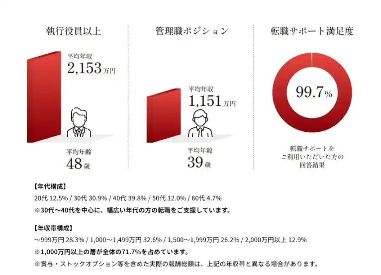 | 2000年創業。専門領域で高いスキルを持つプロフェッショナル人材と、経営幹部人材に特化した人材の紹介会社。戦略系をはじめとするコンサルティング業界やプライベート・エクイティ業界、事業会社のCEO、COO、経営企画、ファンド投資先やベンチャー企業の経営幹部ポジションに強みがあります。また、将来、経営者や経営人材を目指す30代~40代の転職支援も積極的に実施しています。候補者の長期キャリア形成も含めた支援や丁寧な関係構築を得意とすることから、各業界に独自のネットワークを持ち、プロフェッショナル人材や経営人材の領域で、豊富な実績を持ちます。 | |||||||||
