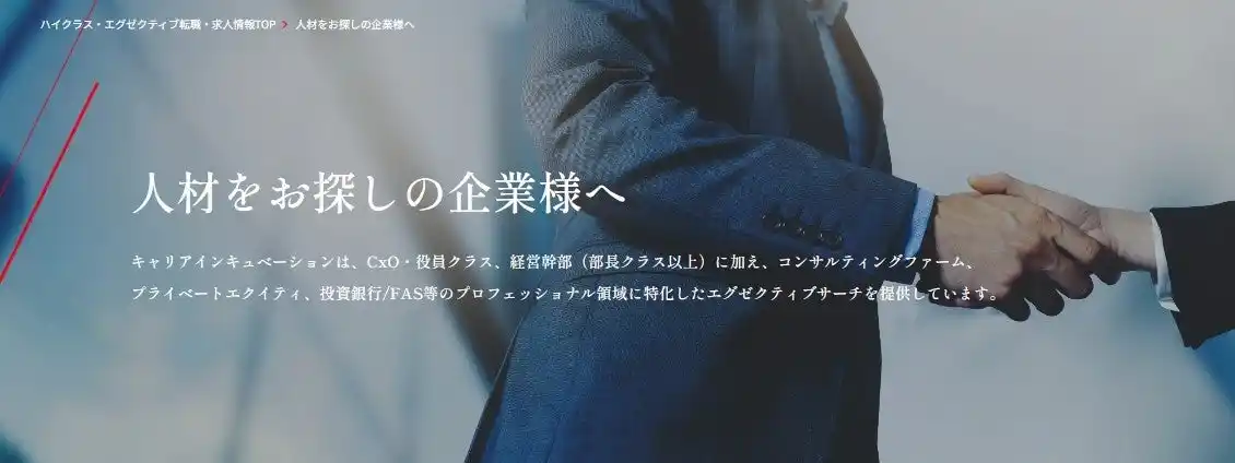 プロフェッショナル人材やビジネスリーダーに特化したハイクラス人材の転職を支援するキャリアインキュベーション株式会社(所在地:東京都千代田区、代表取締役社長:佐竹勇紀)は、企業向けサービスページをリニューアルいたしました。