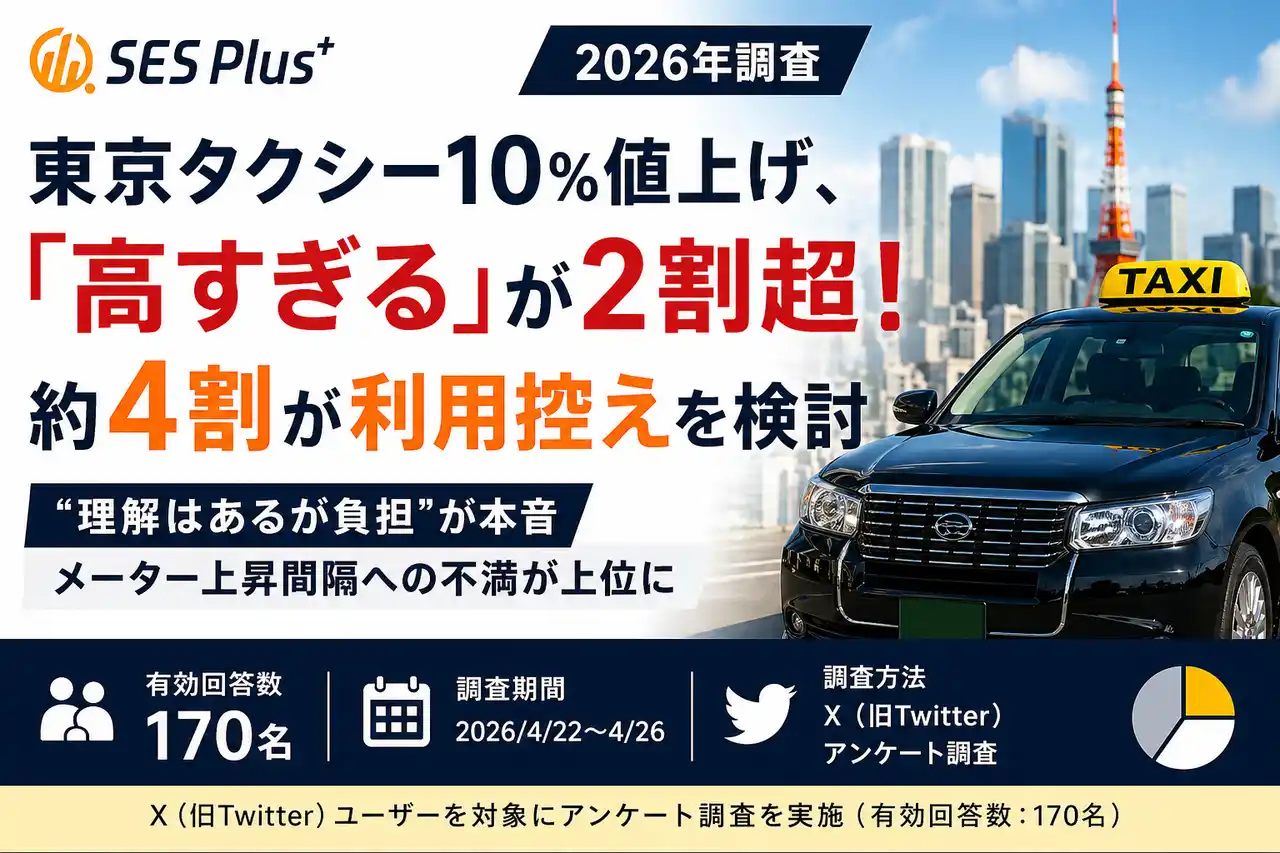 東京タクシー10%値上げ、「高すぎる」が2割超!約4割が利用控えを検討【2026年調査】-SES Plus |