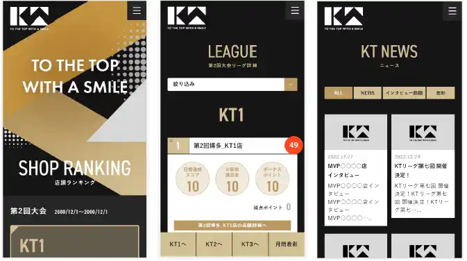 応援したい店舗のランキングや、各リーグ上位の店長へのインタビューといった店舗情報、スポンサー企業様のご紹介など、KTリーグに関しての様々な情報を随時ご確認いただけます。 |