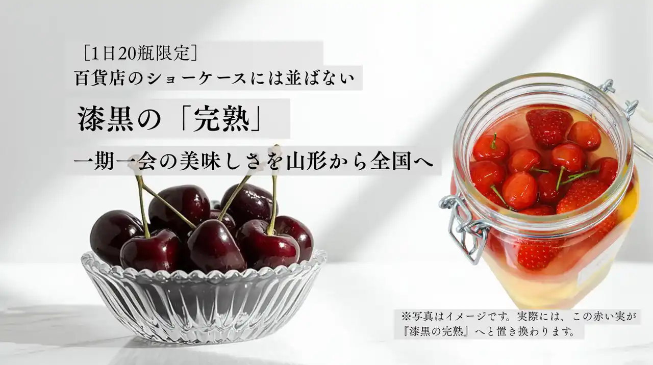 | フルーツ王国・山形から生まれた「生のフルーツデザート」が、開始90分で目標を達成。「交配樹」として誰にも知られず終わっていった漆黒の完熟さくらんぼが、今、全国のファンから熱烈な支持を受けています。 |