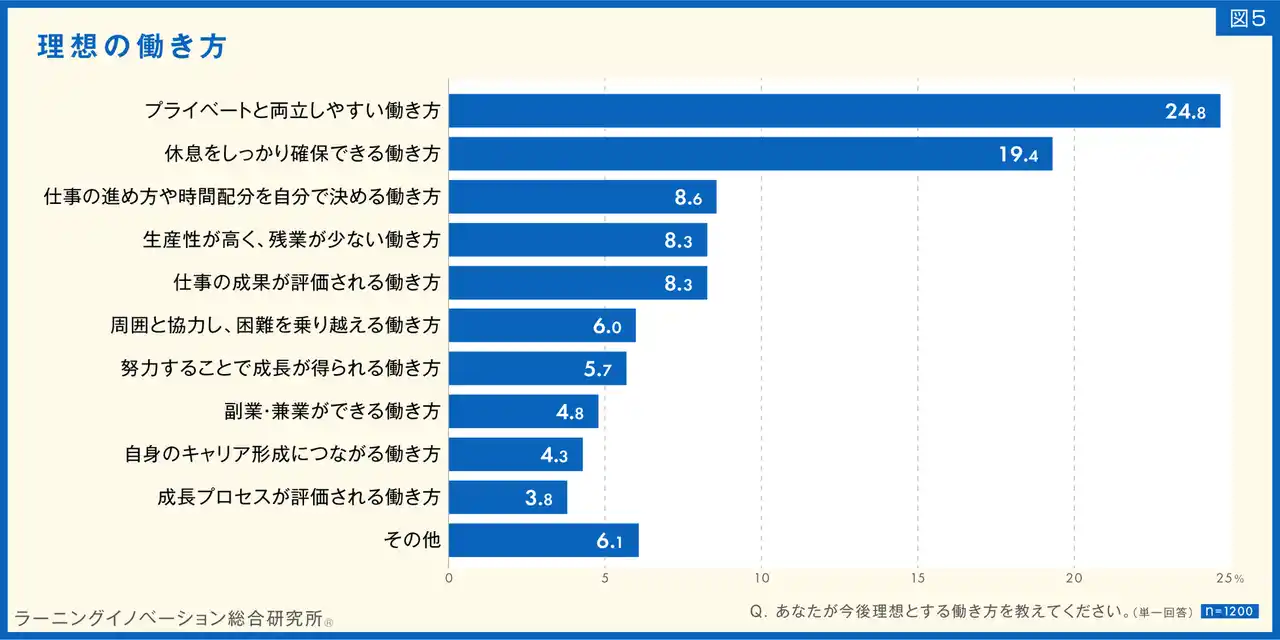 5. 理想の働き方、1位は「プライベートと両立しやすい働き方」、約4人に1人が回答 |