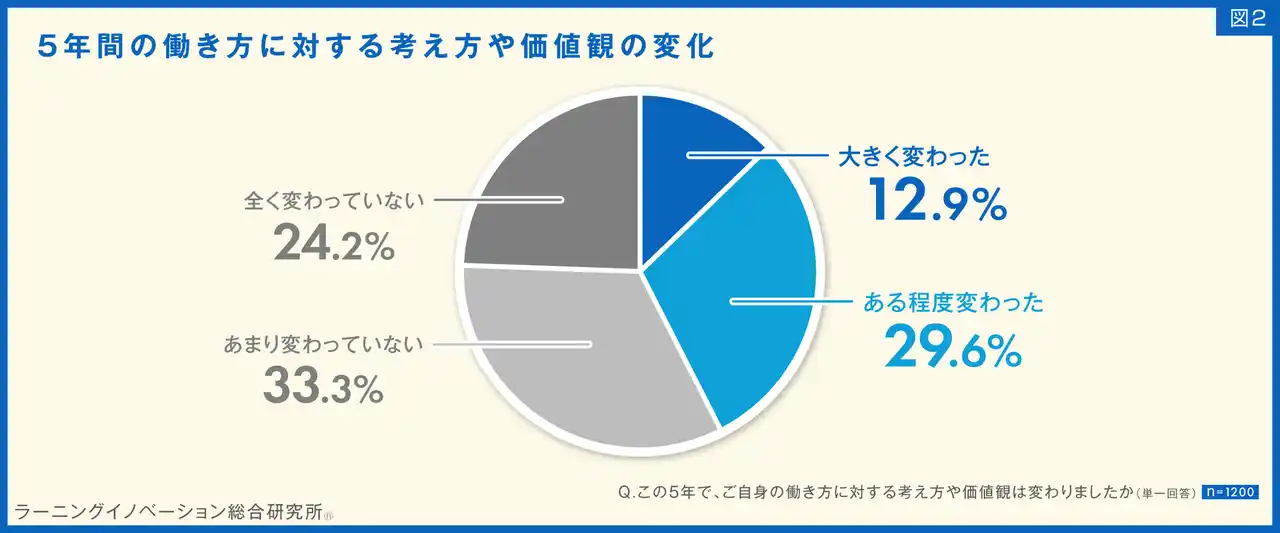 2. 5年間の働き方に対する考え方・価値観、約4割が「変わった」、約6割が「変わっていない」 |