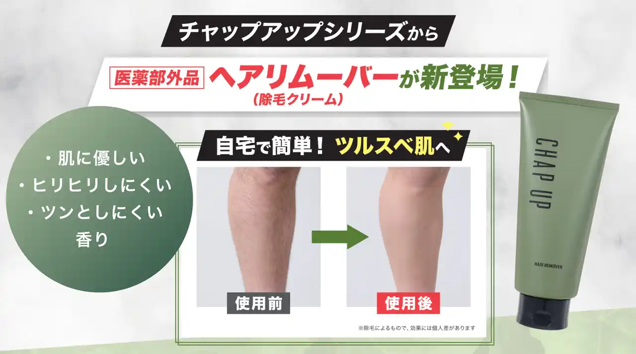 化粧品や医薬部外品などの通信販売業を展開する株式会社ソーシャルテック(本社:東京都新宿区、代表取締役:望月 亨)は、育毛剤、シャンプー等を含むシリーズ累計売上1,400万本*を突破した育毛剤ブランド「CHAP UP(チャップアップ)」から、肌へのやさしさを追求した医薬部外品の除毛クリーム「チャップアップ ヘアリムーバー」を2026年4月30日(木)より各種ECモールサイトにて順次販売開始いたします。 |