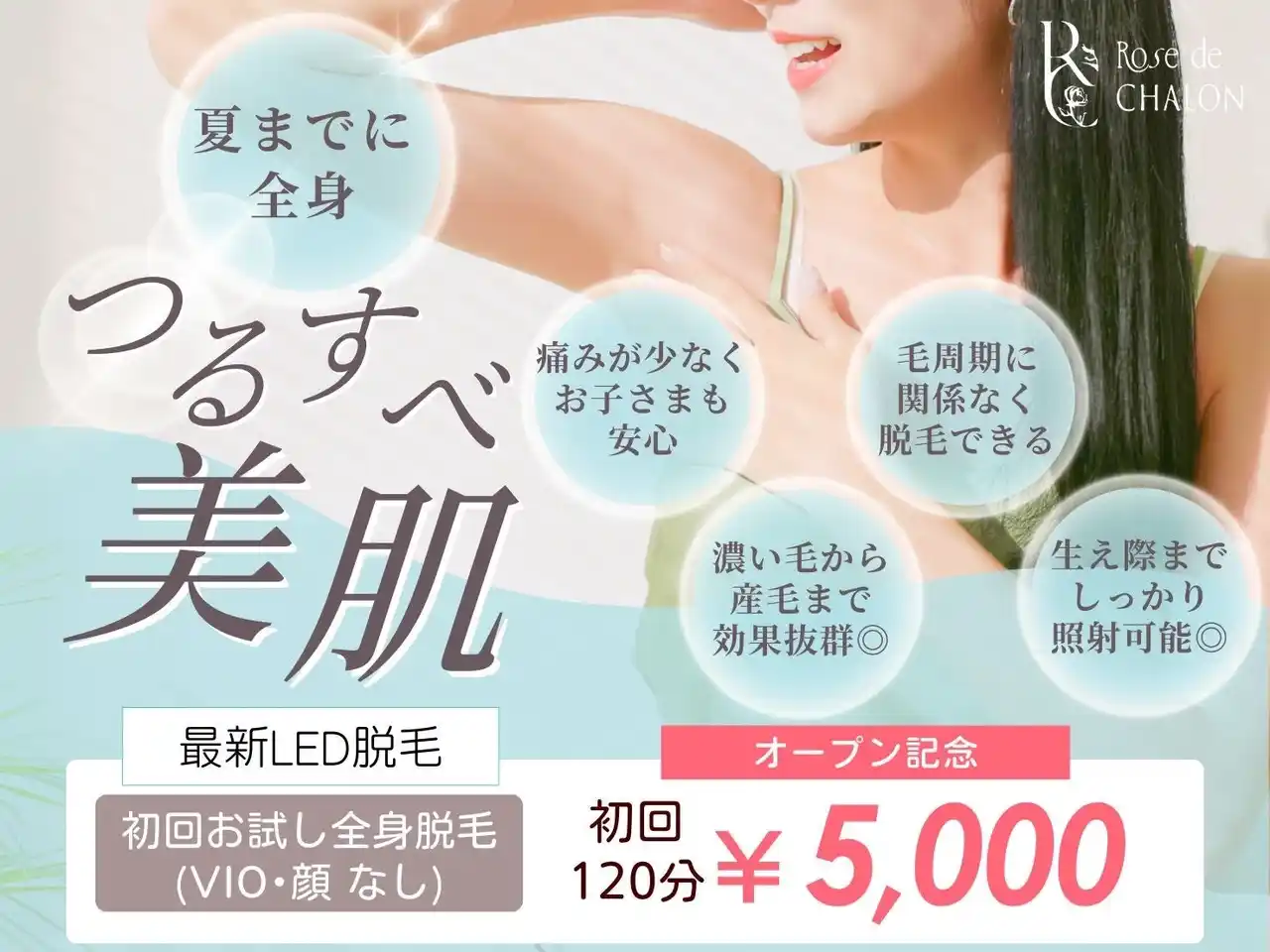 オープン記念として、初回全身脱毛(顔・VIO除く)は5,000円(税込)で提供 |