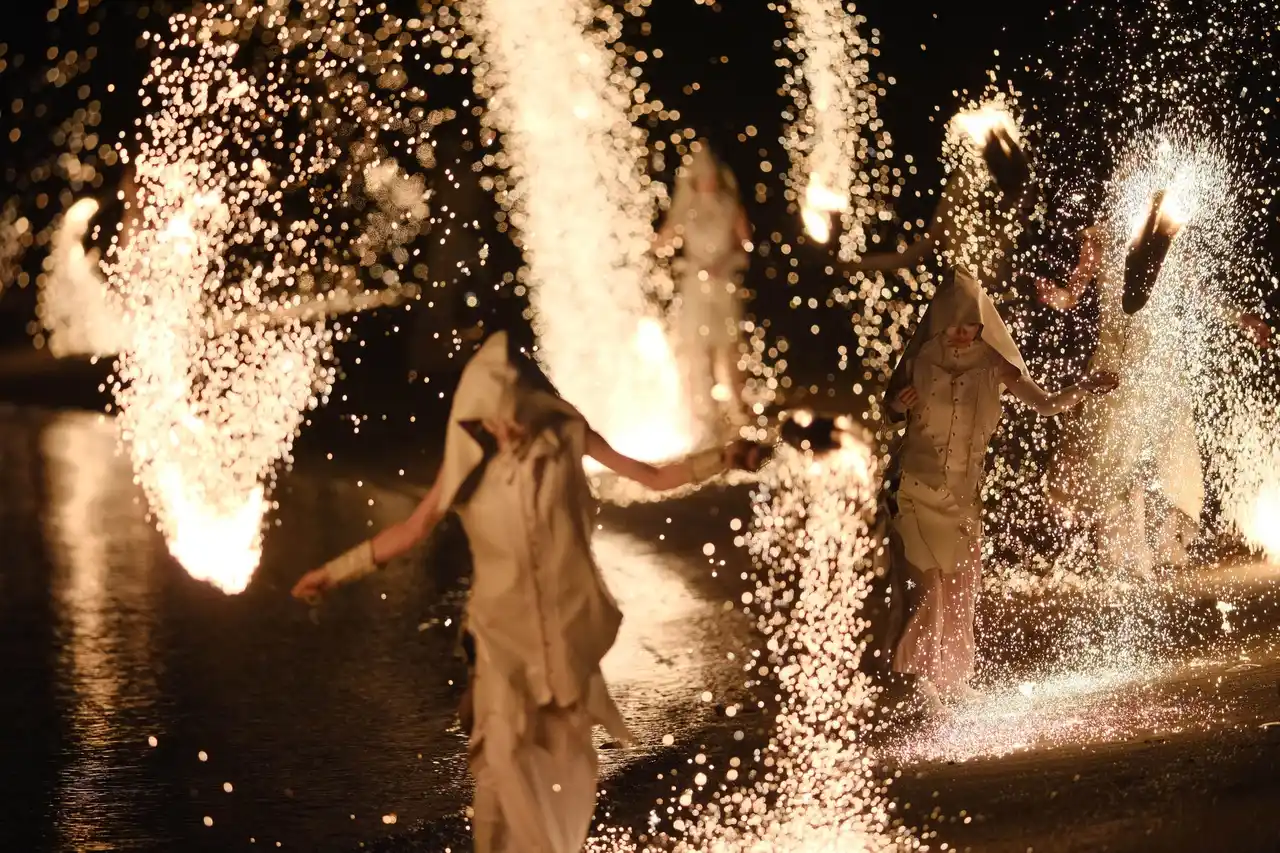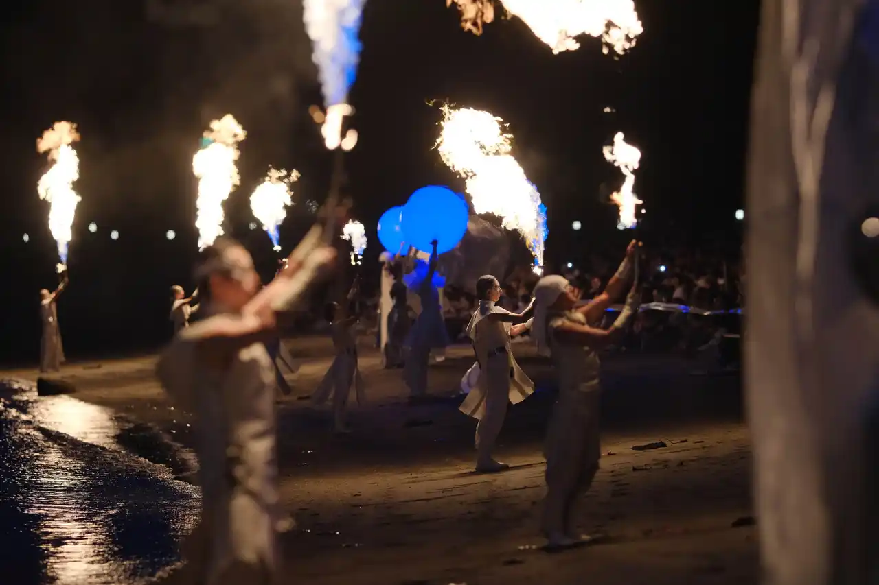 2024-2025年、砂浜600メートルに全面展開した炎蛇演出 |
