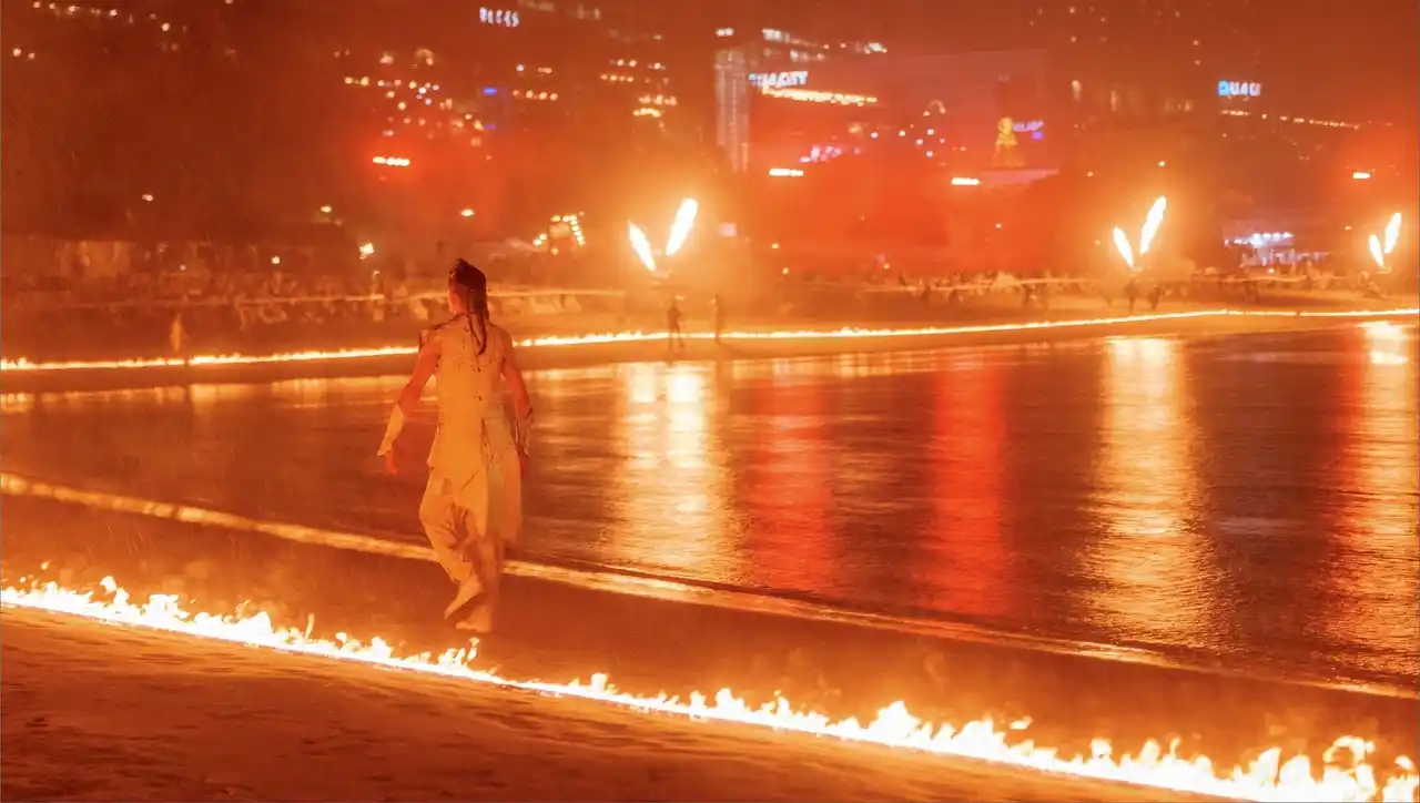 水上の炎に加え、空に舞い上がる12,000発の花火と800機のドローン、さらには生演奏の弦楽アンサンブルが、1時間半の脚本に完全に同期して展開されます。「水の上」という非日常の空間にて提供される視覚的インパクトは、これまでのSTAR ISLANDとは一線を画す体験へと進化。 |