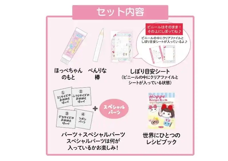 本キット最大の魅力は、ほっぺちゃんらしいしぼりの工程を自分自身で体験できる点にあります。完成品を手にするだけではなく、しぼる、飾る、完成させるというプロセスを通して、キャラクターへの愛着がさらに深まります。 |
