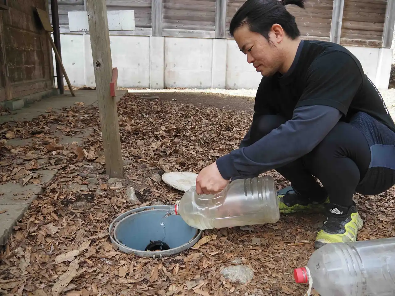 武甲山の水歩荷とは、武甲山道中の18丁目に位置する不動滝の水を、山頂に位置するトイレまで担ぎ上げるボランティア活動です。武甲山の山頂トイレは雨水を利用しているため、雨量によっては水不足が発生し、利用できなくなることがあります。そのため、登山者の協力に頼っています。水歩荷は、ボランティアをしながらトレーニングにもなるアクティビティです。 |