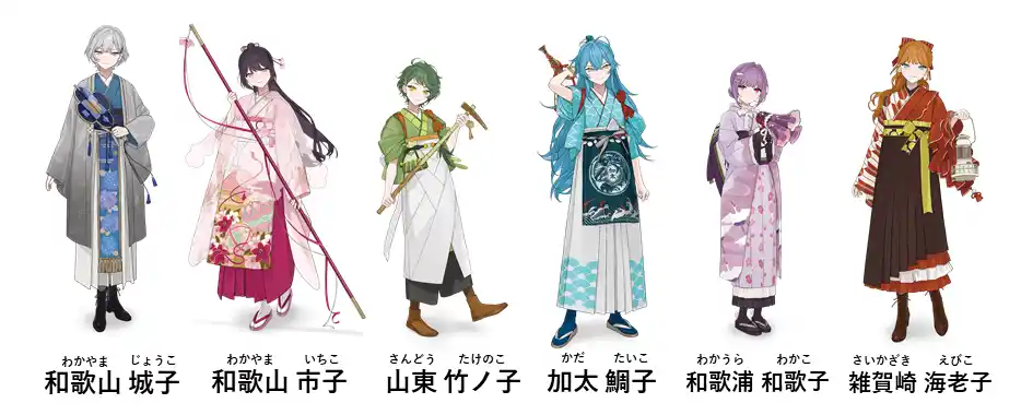 和歌山市の知名度向上を目指すため、和歌山市役所のシティプロモーション課が、市内各地を擬人化した6人のキャラクター広告である「和歌山市子」シリーズを展開した。 |