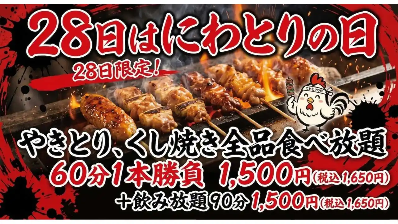 | ■やきとり食べ放題「にわとりの日」とは? | |||||||||||||||