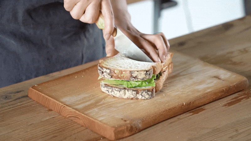 やわらかいサンドイッチも切り口を崩さずきれいに切れます。 |