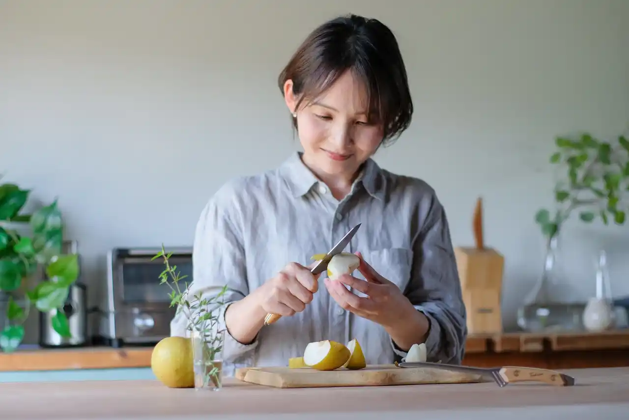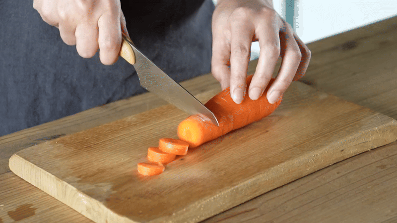 カット野菜などで「さっと整える」現代の調理スタイルに合わせ、コンパクトながら三徳包丁のように押し切りができる独自の構造を採用。まな板に指が当たりにくく、肉のカットからみじん切り、固いカボチャまで、毎日の調理のほとんどをこの一本で完結できます。 |