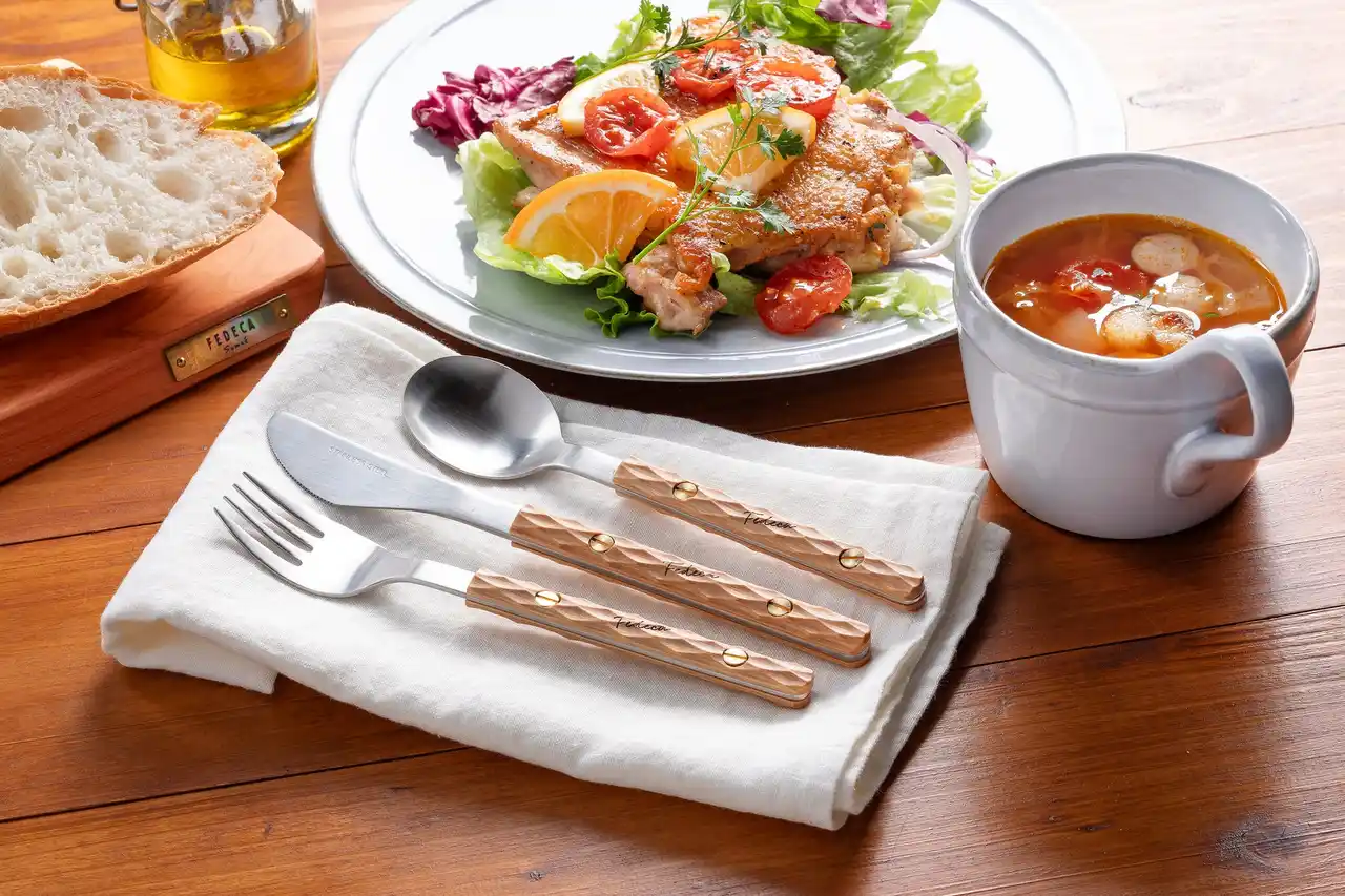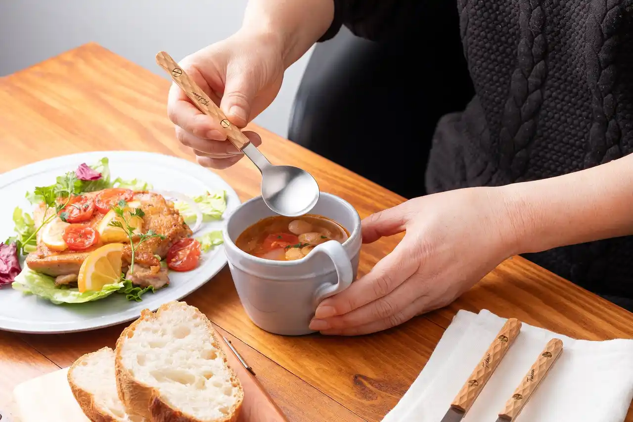 最大の魅力は、ティースプーンより少し大きく、ディナースプーンより小ぶりな絶妙のサイズ感。大人のデザートタイムから、お子様のカレーライスまで、毎日の食卓で「これが一番ちょうどいい」と自然と手が伸びる存在です。コンパクトな仕立ては、ご家庭だけでなくアウトドアのテーブルでも邪魔になりません。 |