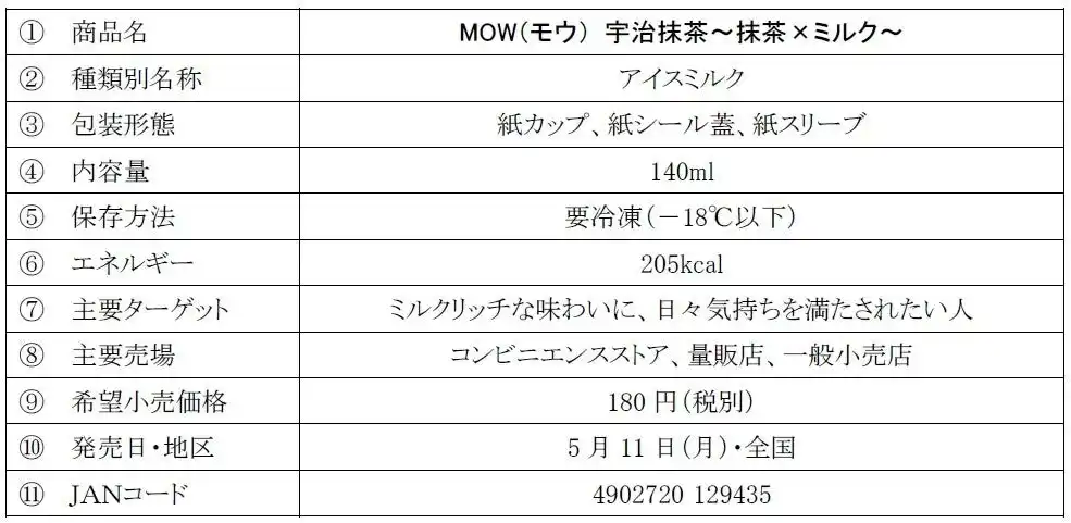 | <「MOW(モウ)宇治抹茶~抹茶×ミルク~」> | |||