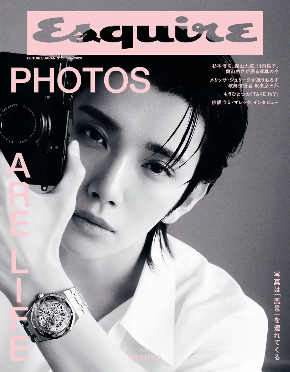 今号の表紙とカバーストーリーを飾るのは、世界を席巻するグループ、SEVENTEENのJOSHUA。スイスの高級時計ブランド「オーデマ ピゲ」の至高のタイムピースをまとい、自身の内に秘めた静かな情熱と、表現者としての現在地を映し出す特別なフォトストーリーを展開します。撮影現場では、一瞬の光や影の移ろいに対してJOSHUAが見せた繊細な感性と、時計のメカニカルな美しさが共鳴。多忙なスケジュールの中でも、カメラを向けられた瞬間に漂わせる彼の「力強いまなざし」が、今号のテーマを象徴する力強いビジュアルとして収められています。 |