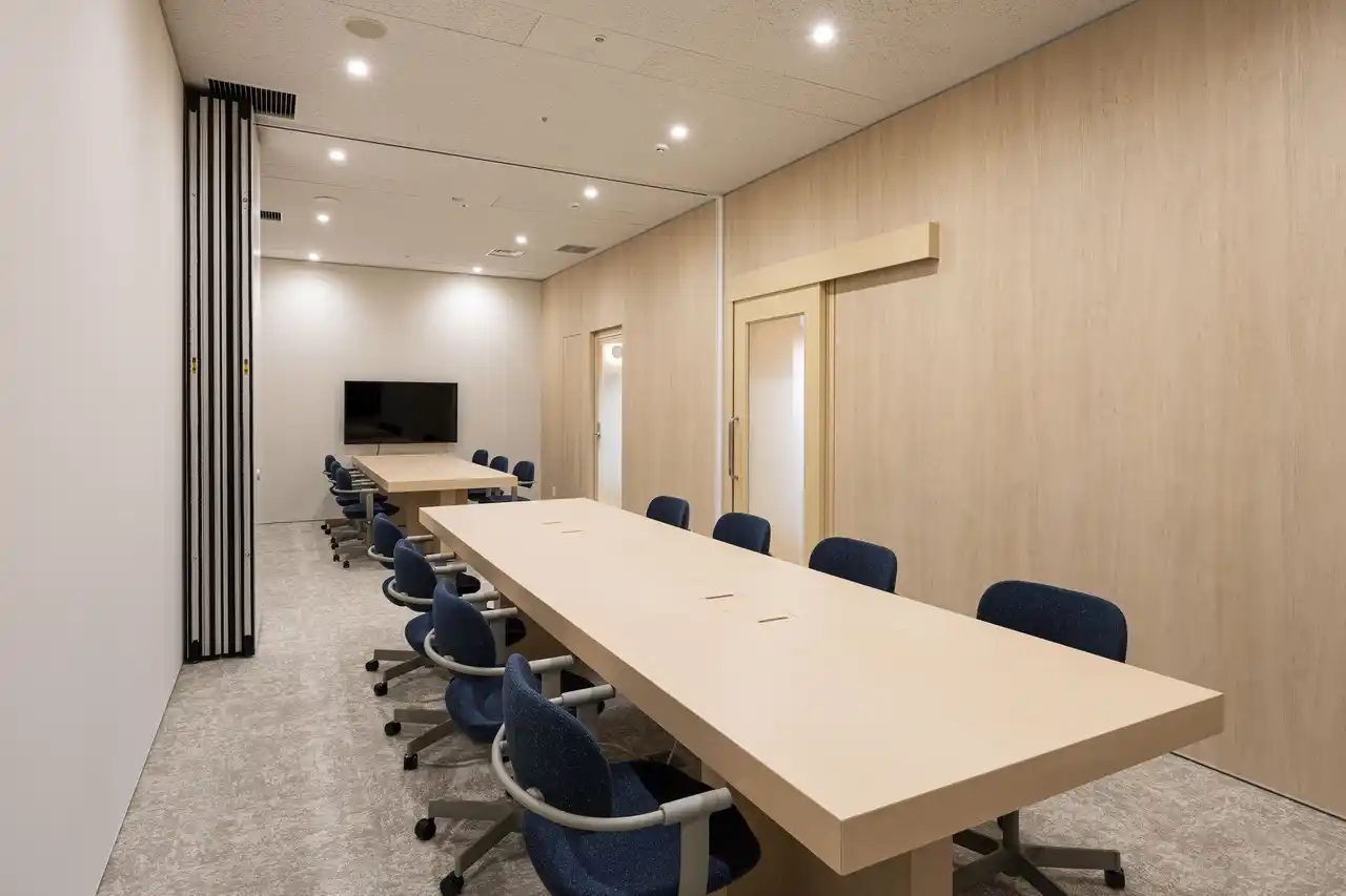 | 4名から10名用まで、大小5室のミーティングルームを新設しました。可動パーテーションを開放することで最大14名の打ち合わせに対応可能です。中央の「ひろばラウンジ」は家具のレイアウト変更により、20人~30人規模のイベントスペースとしても利用できます。各会議室はQRコードから簡単に予約できるシステム「Airリザーブ」を導入しました。ランチタイムはラウンジエリアの予約を制限し、多くの人が利用できるよう工夫するなど、柔軟かつスムーズな運用を実現しました。 | ||||||||||||||||