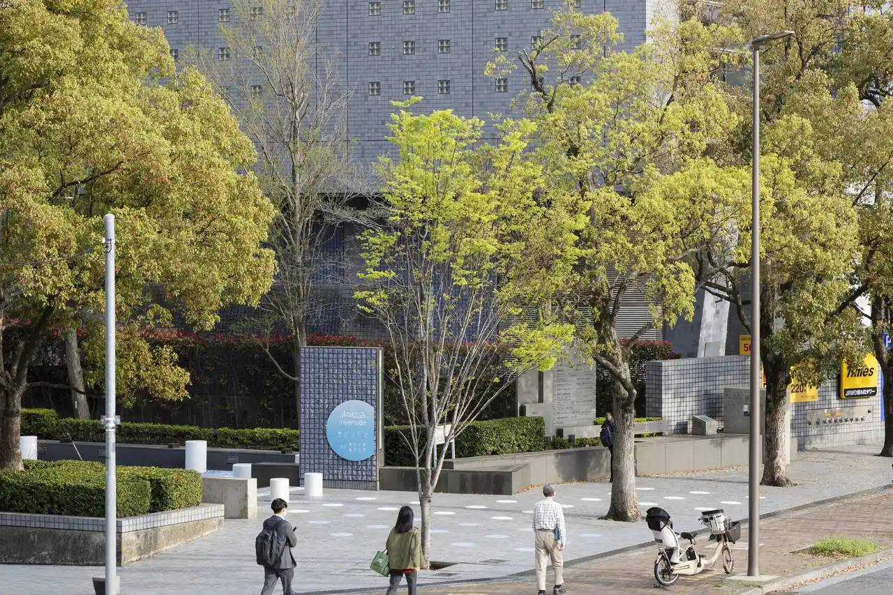 | 周辺エリアが「ドラム缶発祥の地」である歴史的文脈を反映し、ドラム缶をモチーフにした円柱形のストリートファニチャーを設置。さらに、水面の波紋や泡をイメージした床面グラフィックにより、「休憩する」「遊ぶ」「待合わせする」「通り抜ける」といった行動を自然に促すデザインを施しました。物理的な改修を最小限に抑えつつ、視覚的なデザインの力で、形式的な公開空地を「滞在できる空間」へと昇華させています。 | ||||||||||||||||